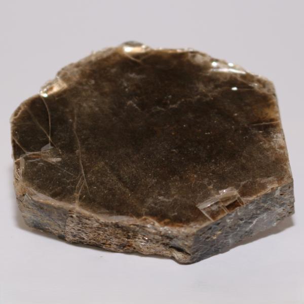 Euhedral book of Phlogopite Mica, 6cm. White/silver/light brown colour, hexagonal habit, perfect cleavage. Donated to me by Imperial College in 2009