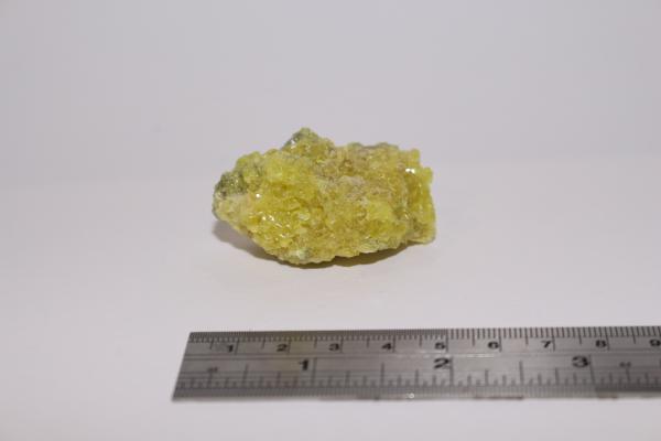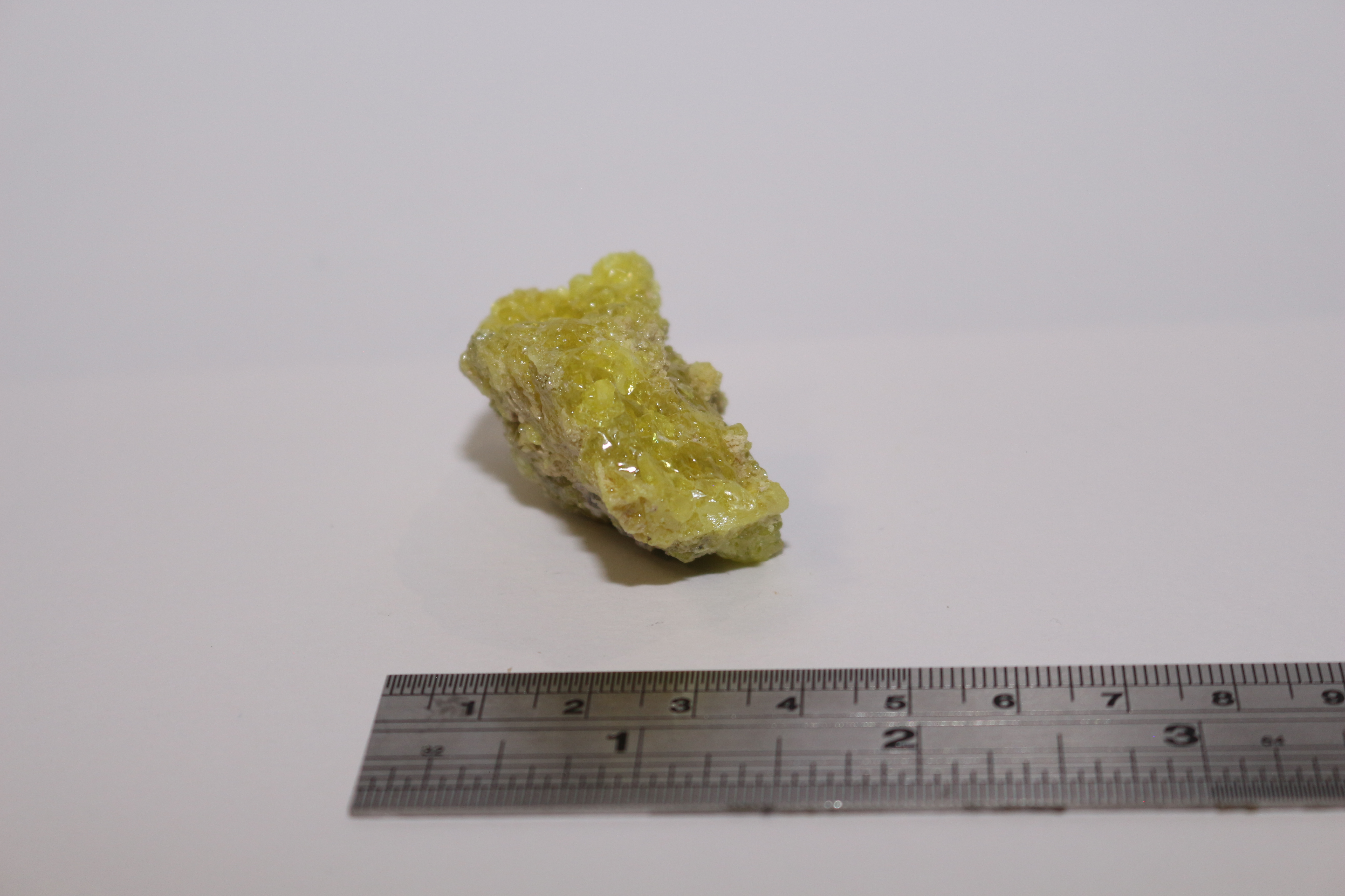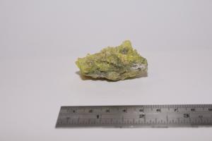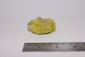 Small cluster (5-6cm) of yellow crystals of Sulphur (0.5cm). Origin unknown. Bought at Sussex Mineral Show in 2022