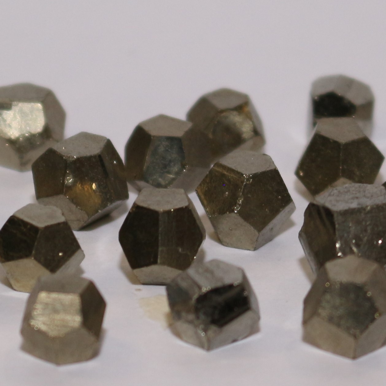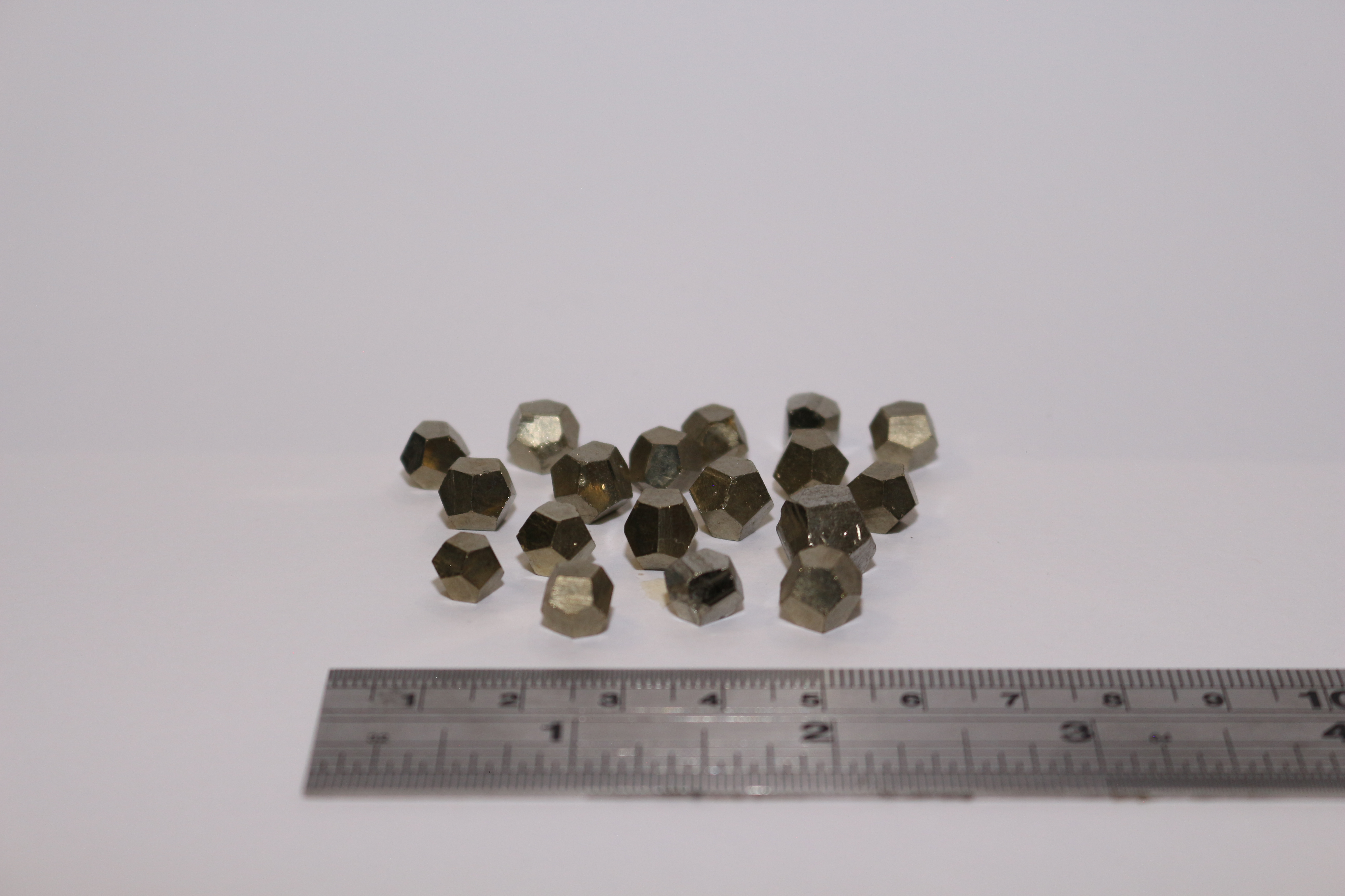 Small pyritohedrons, from Peru. Each 0.5-0.8cm. Sourced from Kempton Park 2014