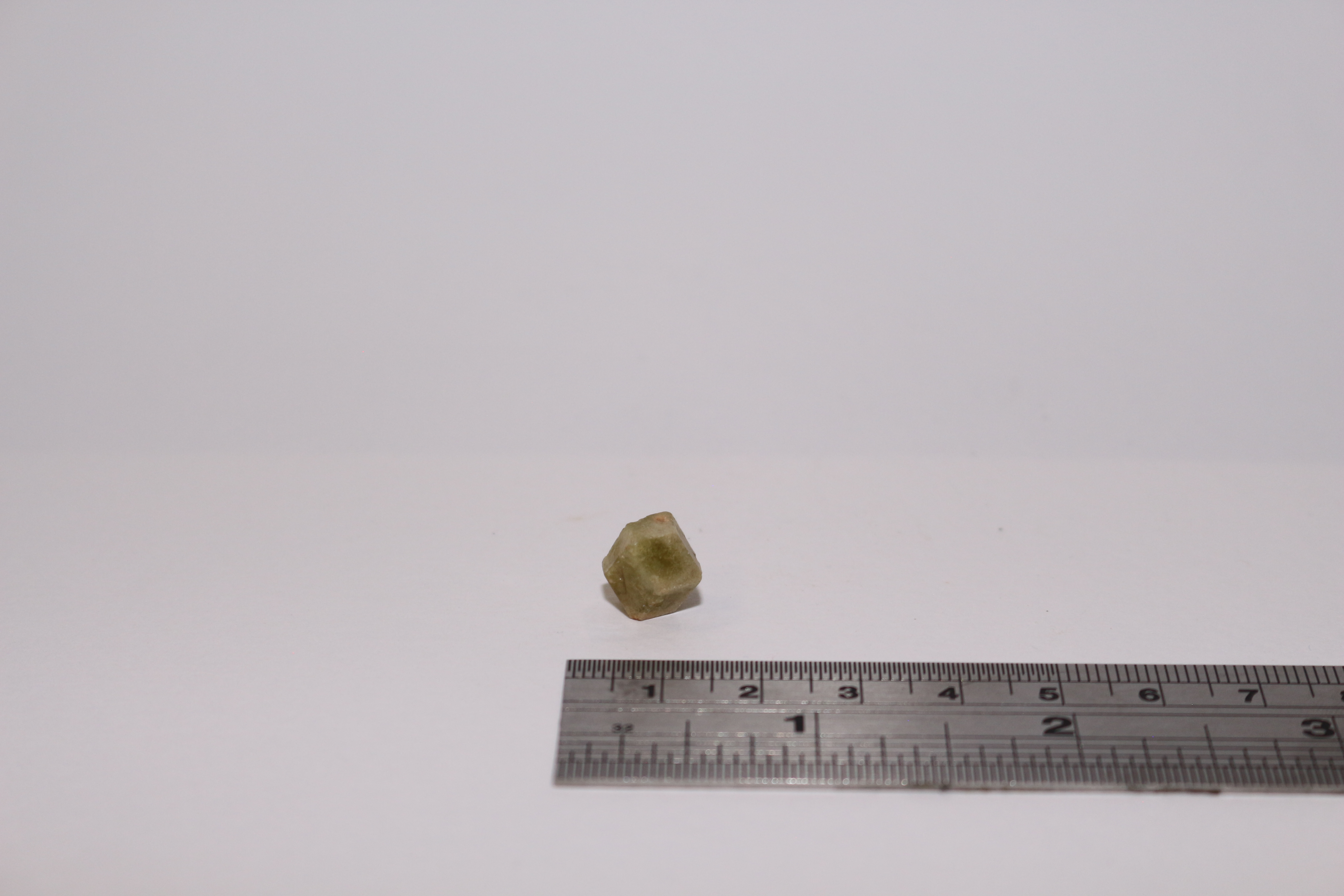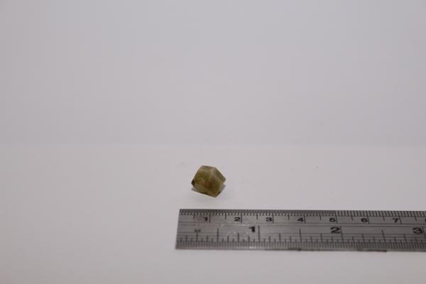Description : Single garnet crystal, 0.8cm across , green colour. Well faceted. Bought at Kempton Park in 2016