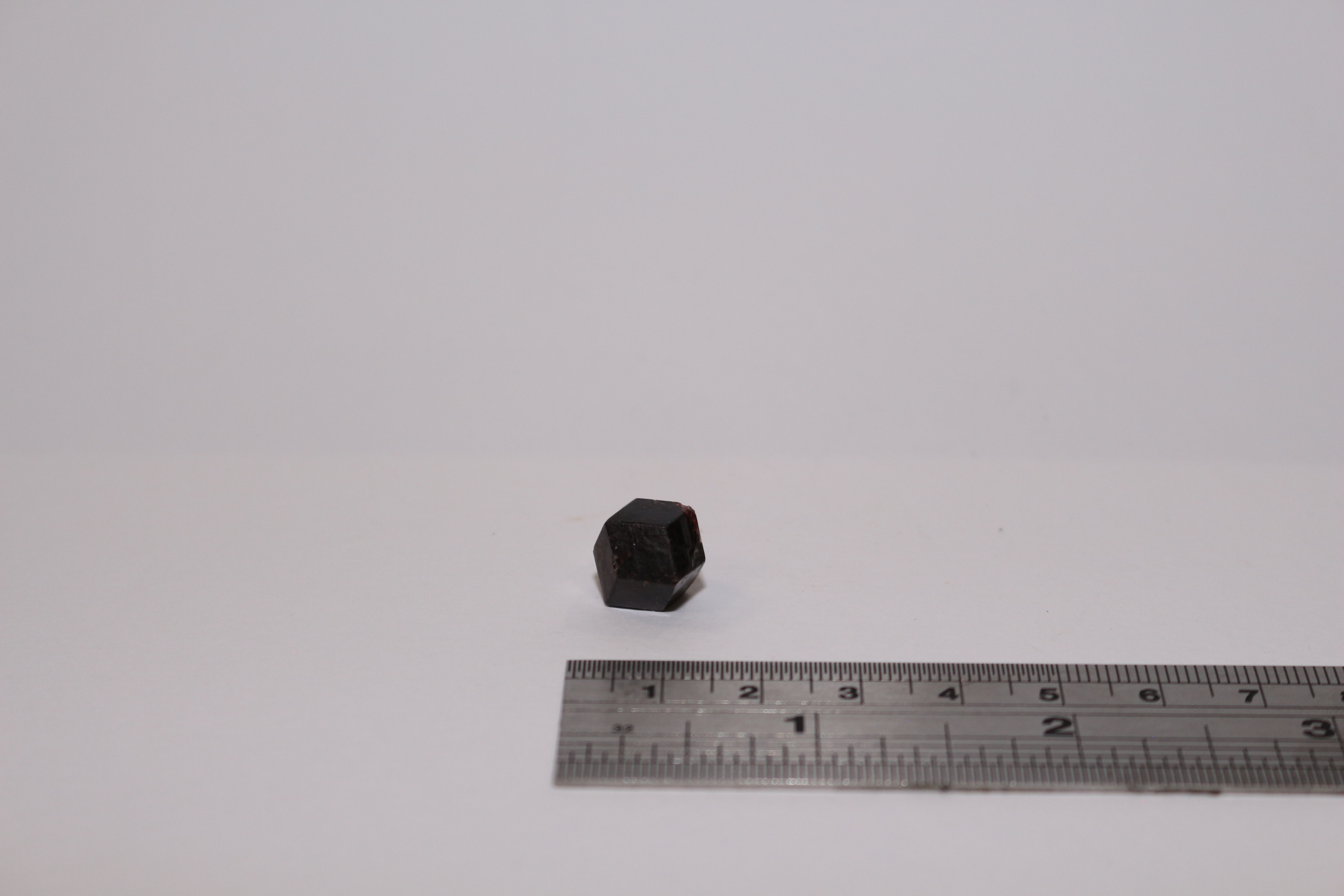 Description : 1cm black/deep-red garnet, well-faceted crystal. Bought at Kempton Park in 2014