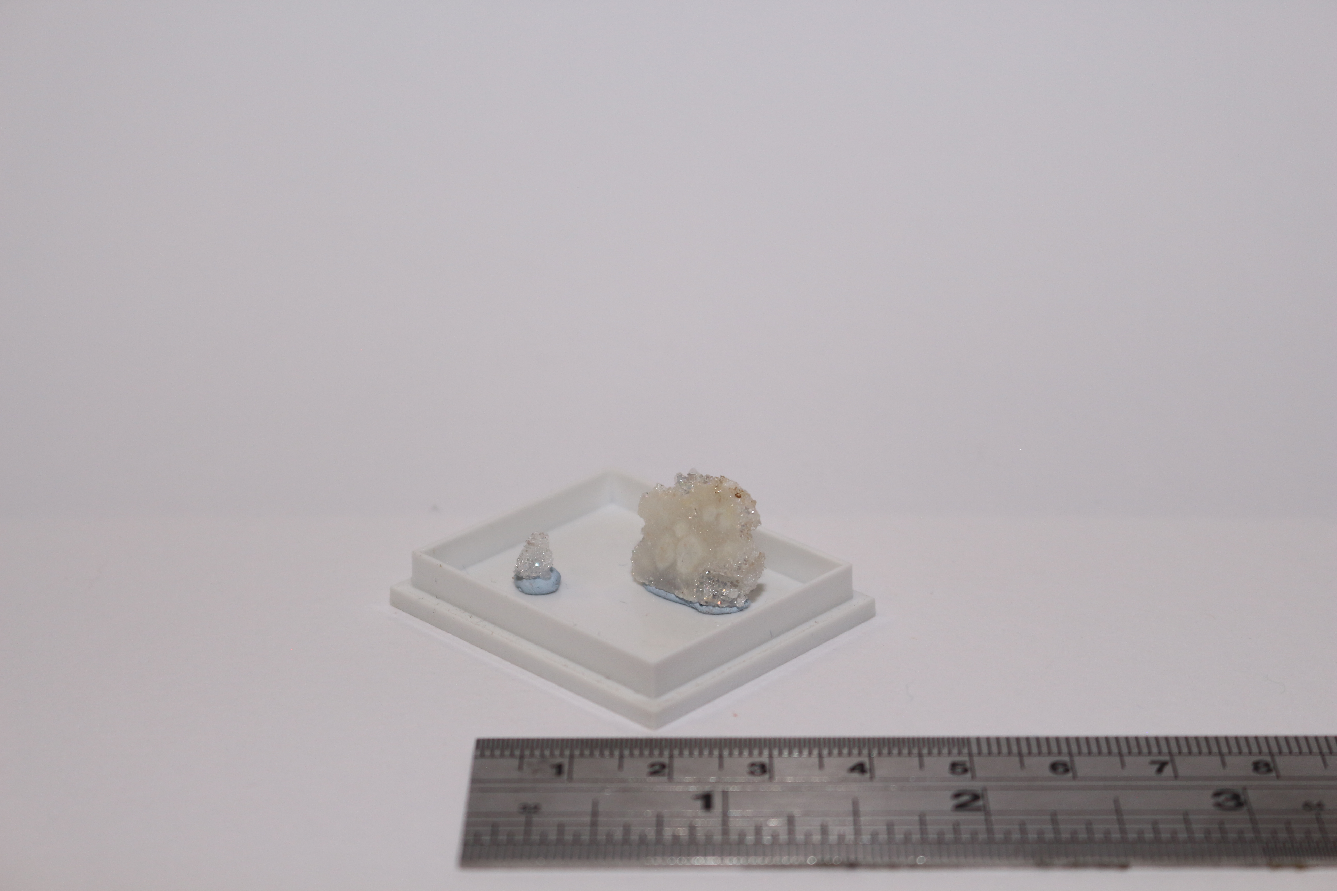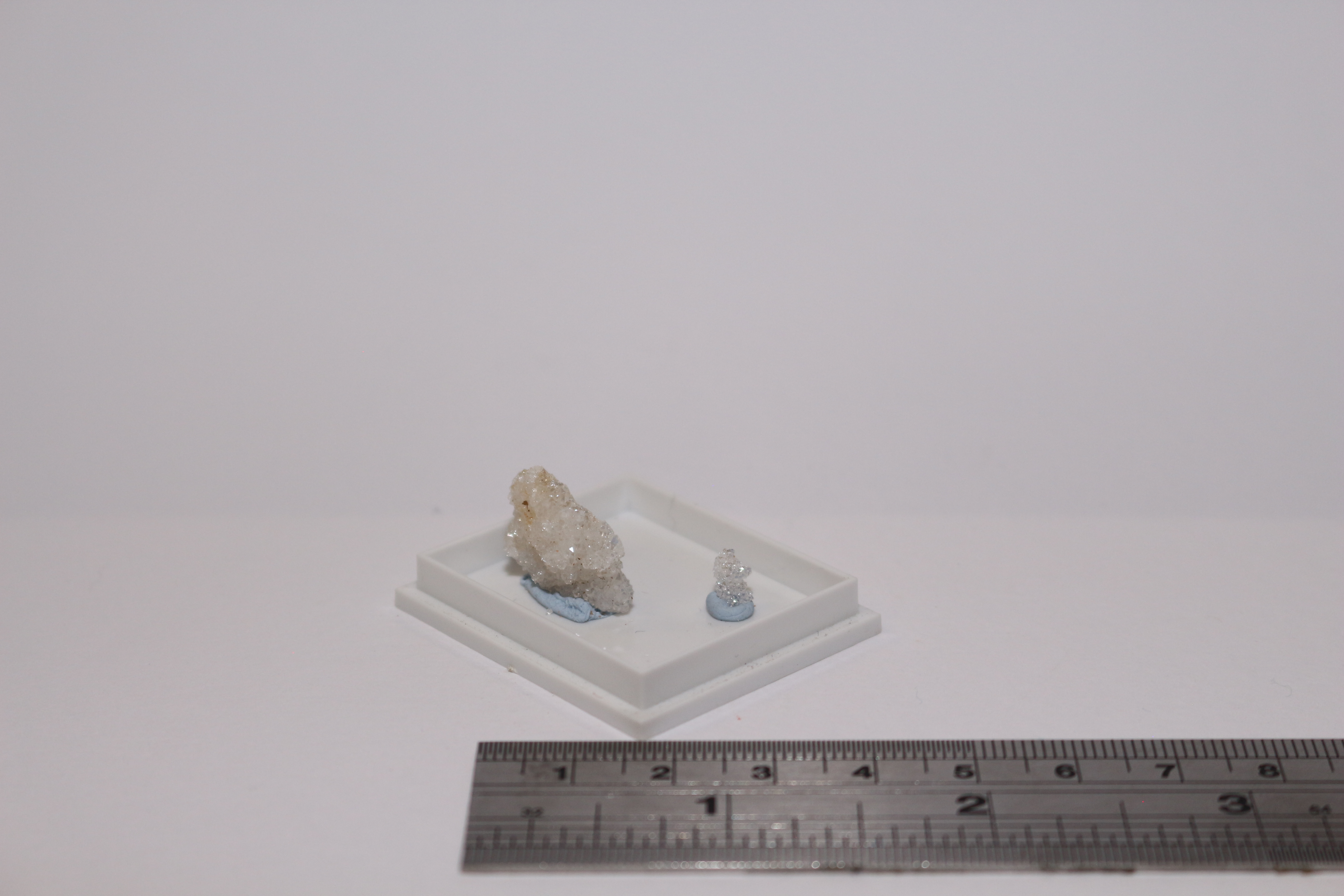 Description : Small specimen of quartz with crystals with artificial aura. Bought at Kempton Park 2024