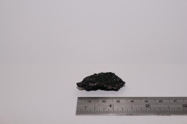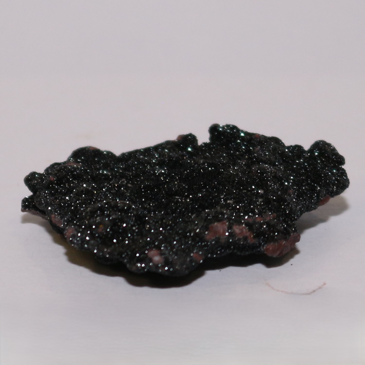 Very small, very shiny black crystals on accretionary formation. Bought at Kempton Park in 2024