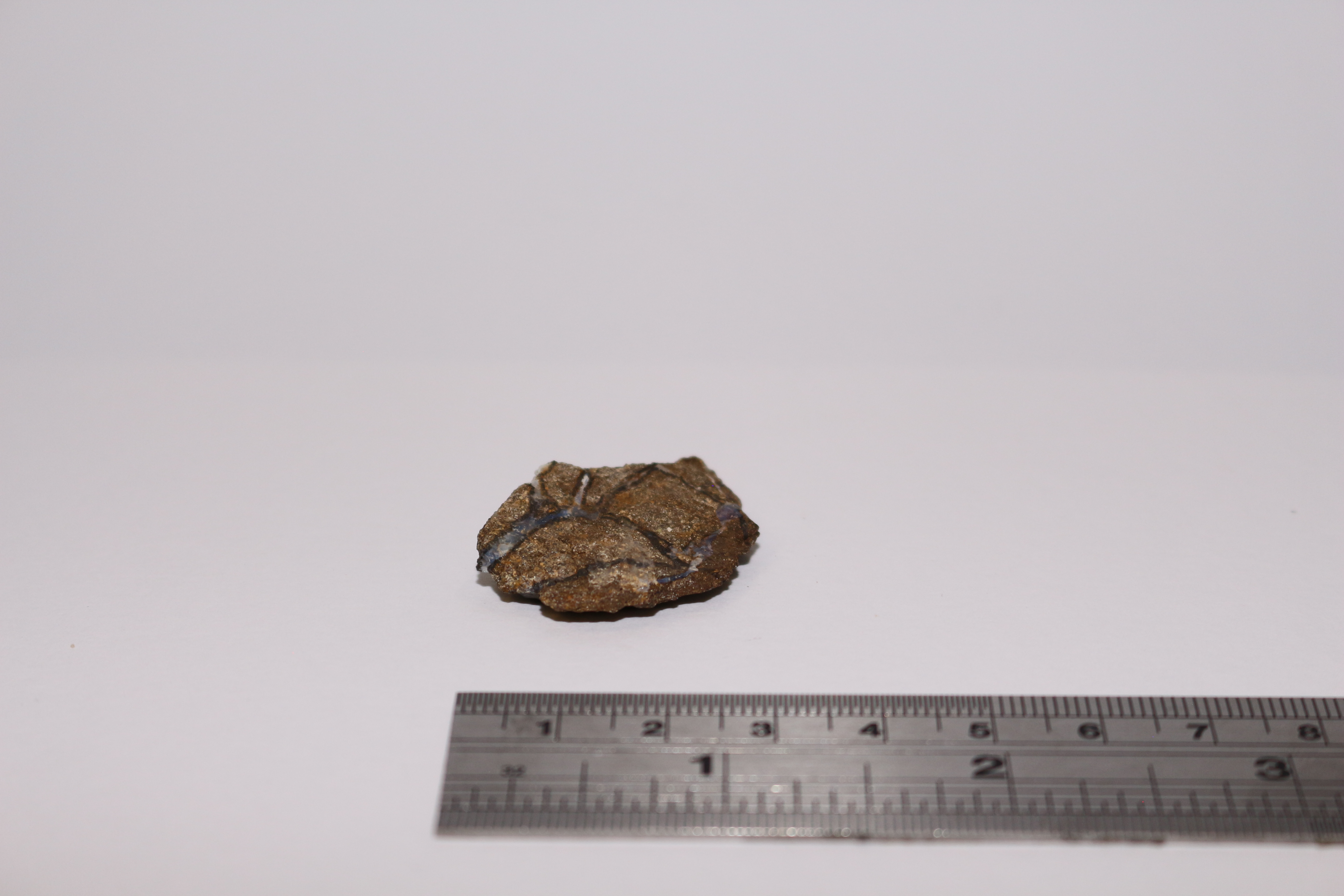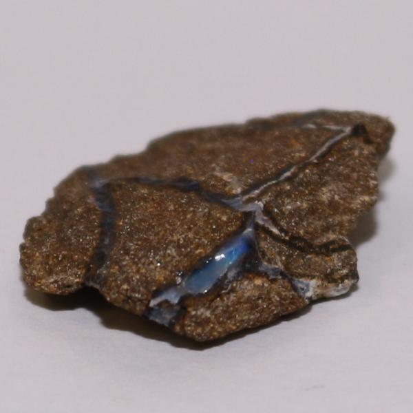 Australian boulder opal, thin vein of blue and purple colour in matrix. 2.5x2x0.75 cm.