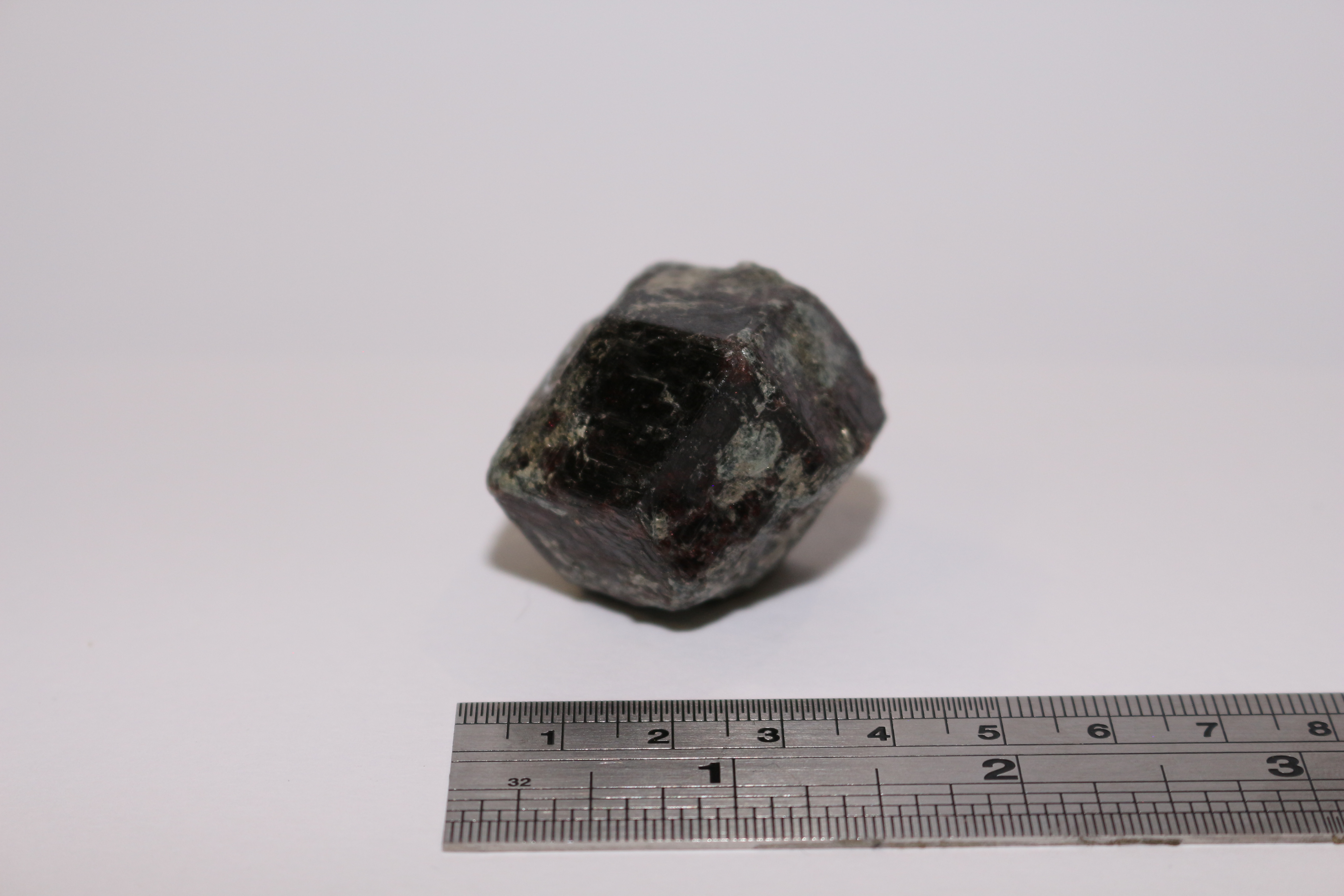 Description : Large, euhedral garnet with some alteration to chlorite. Deep red/black in colour. 4-5cm in diameter. Donated by Imperial College in 2009