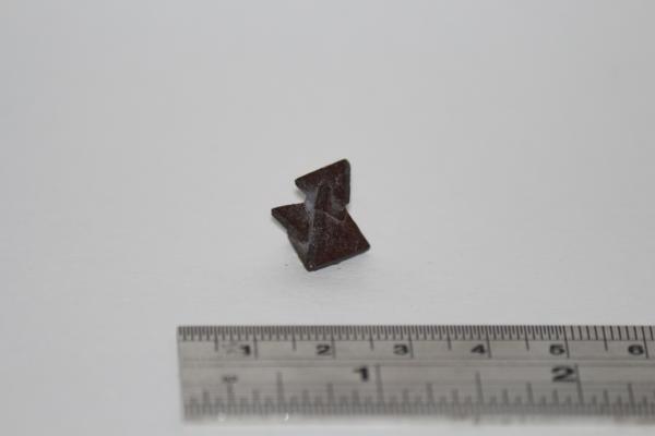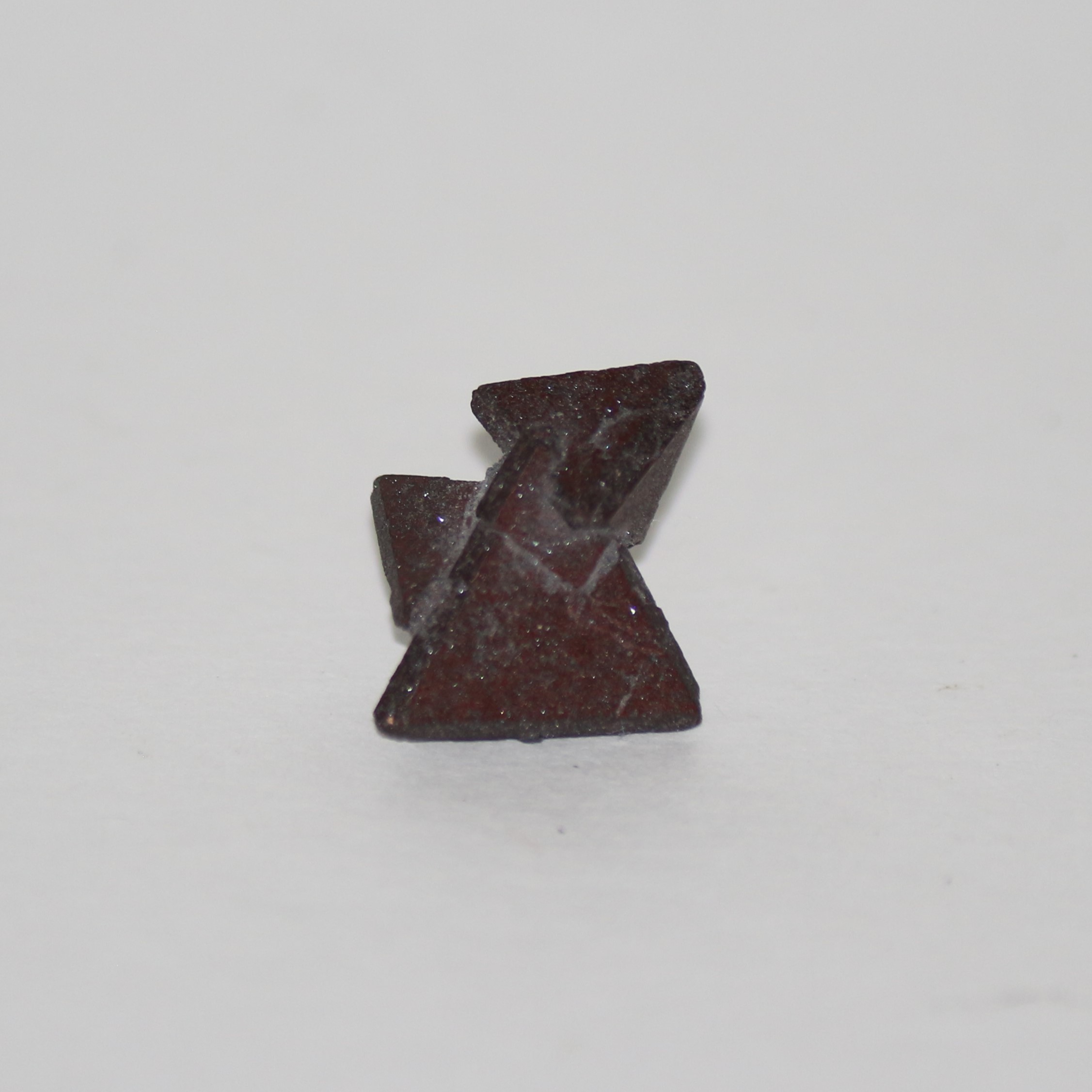 Pyramidal interlocking crystals, 1x1cm grey-red in colour.Aluminium, hydrogen, chlorine, fluorine, oxygen, silicon. Bought at Kempton Park in 2022