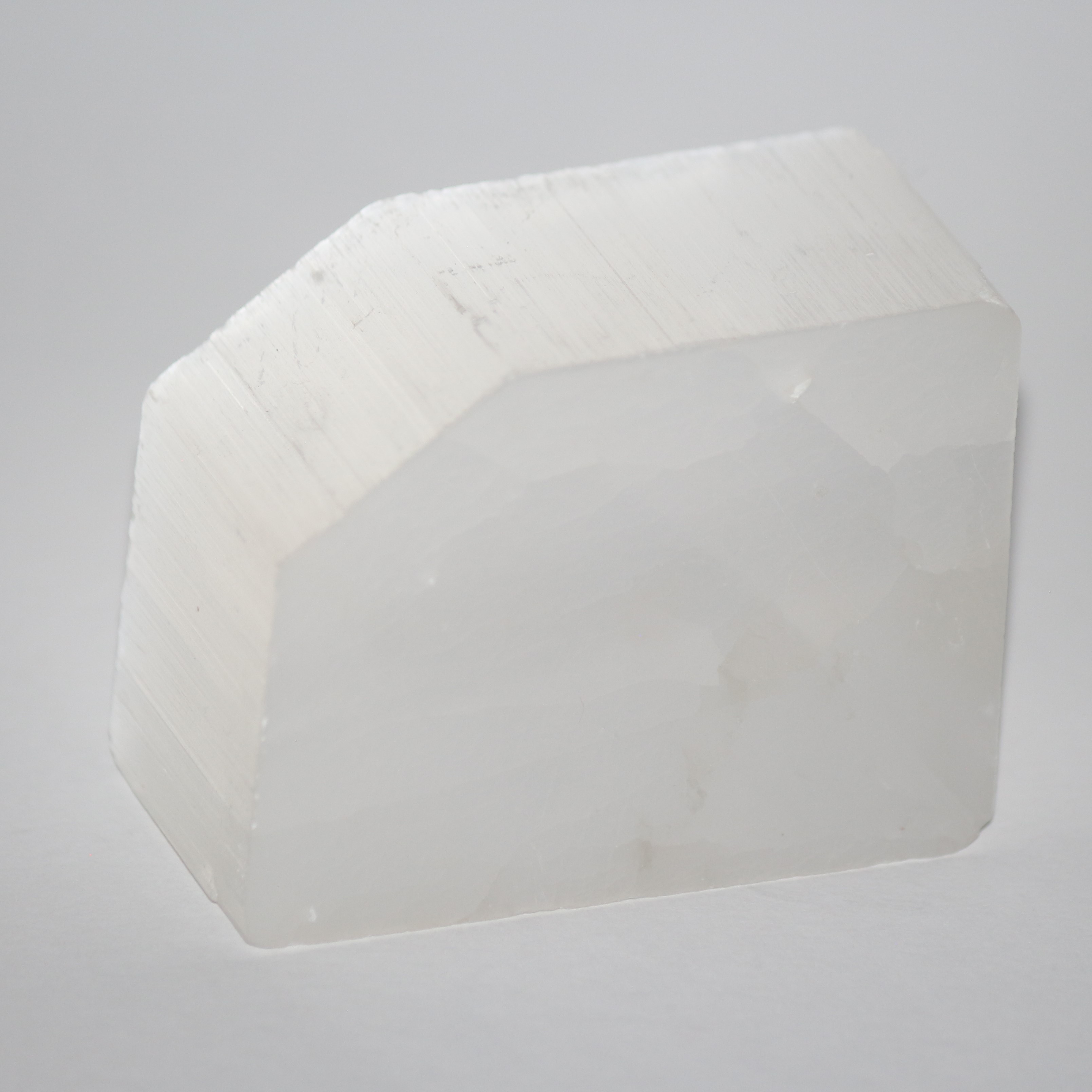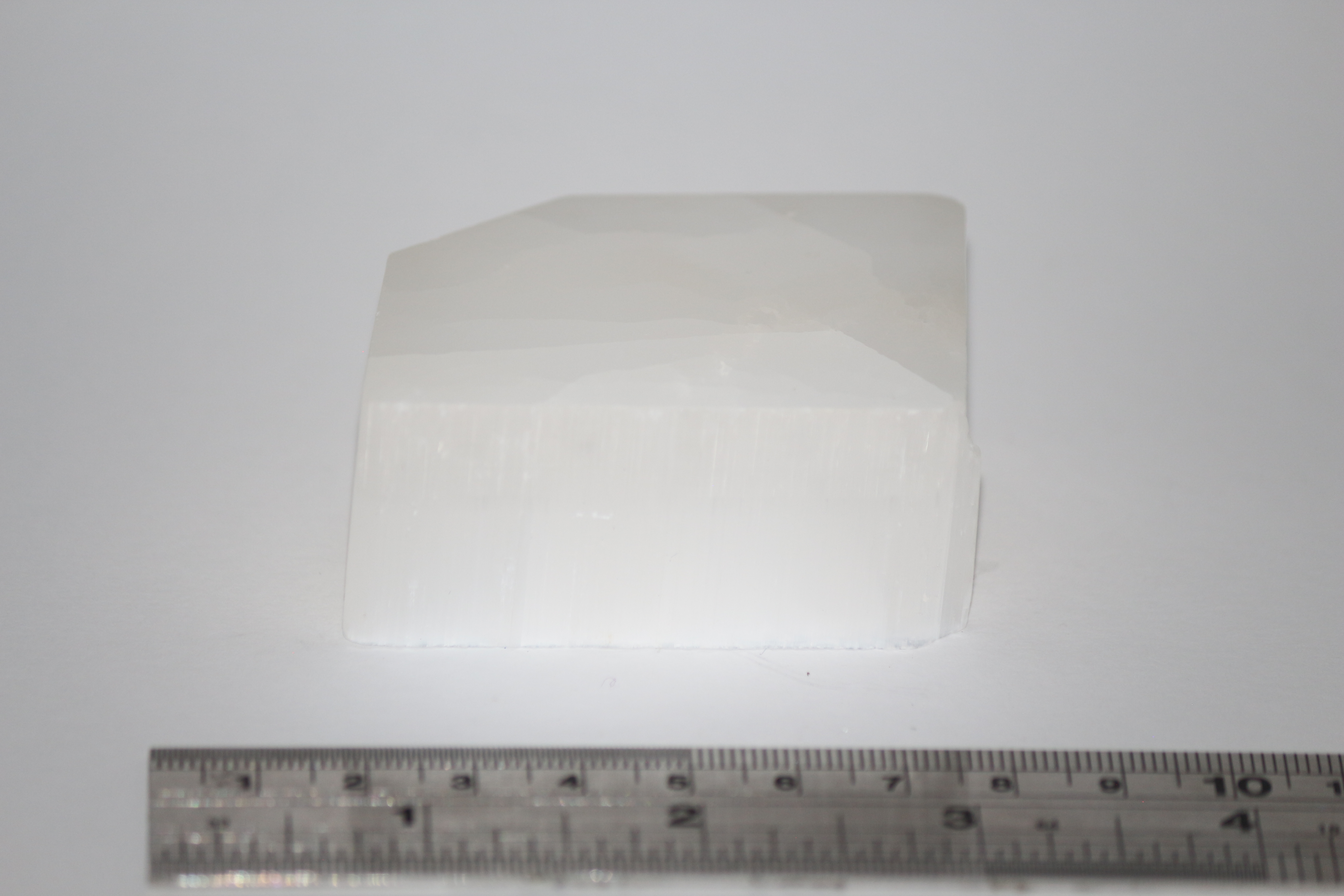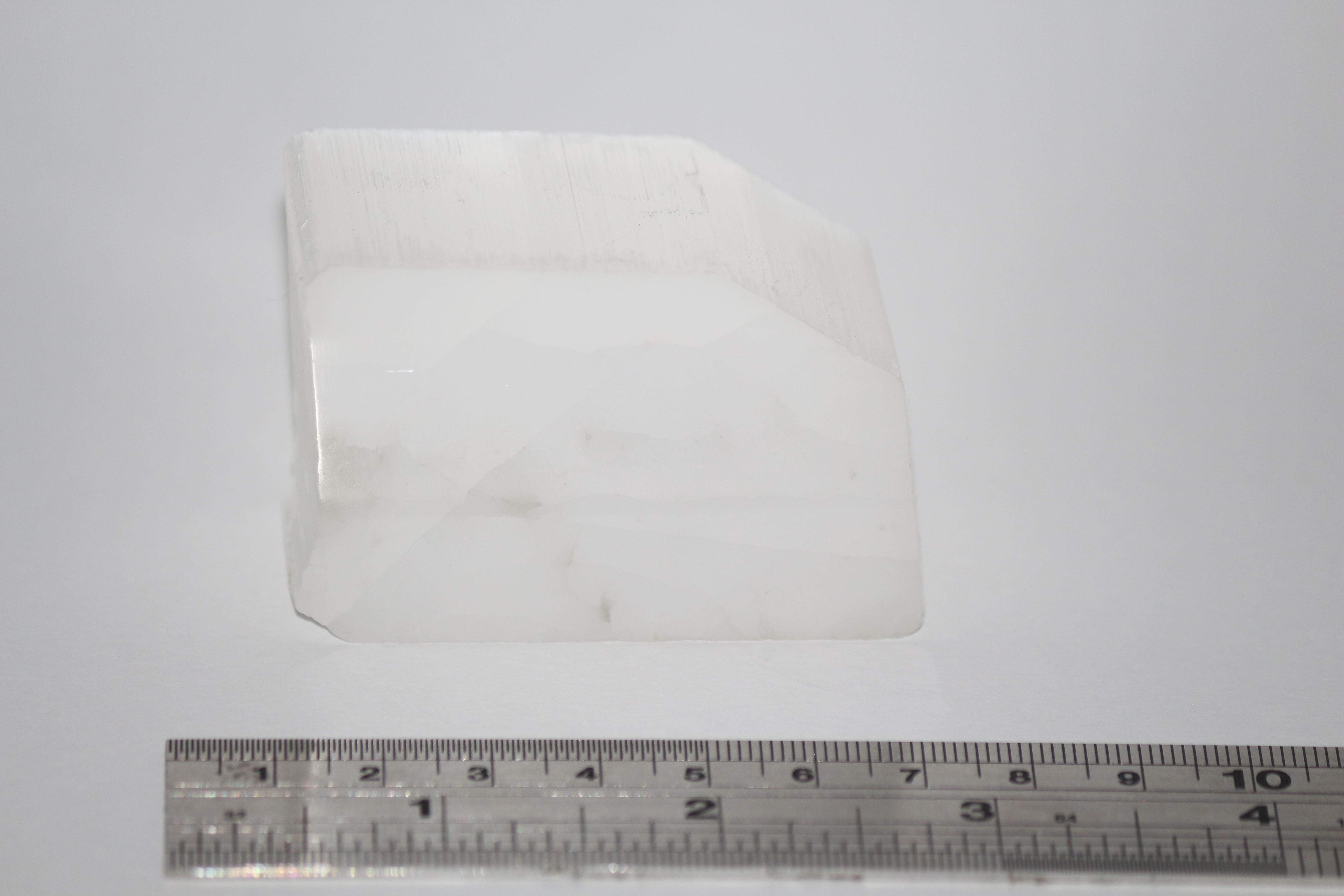 Description : Large specimen of Ulexite, 8x6x2cm. Has some internal fractures but good quality projection as “TV stone”. White/colourless in colour, fibrous on unpolished surfaces. Bought at Kempton Park in 2021