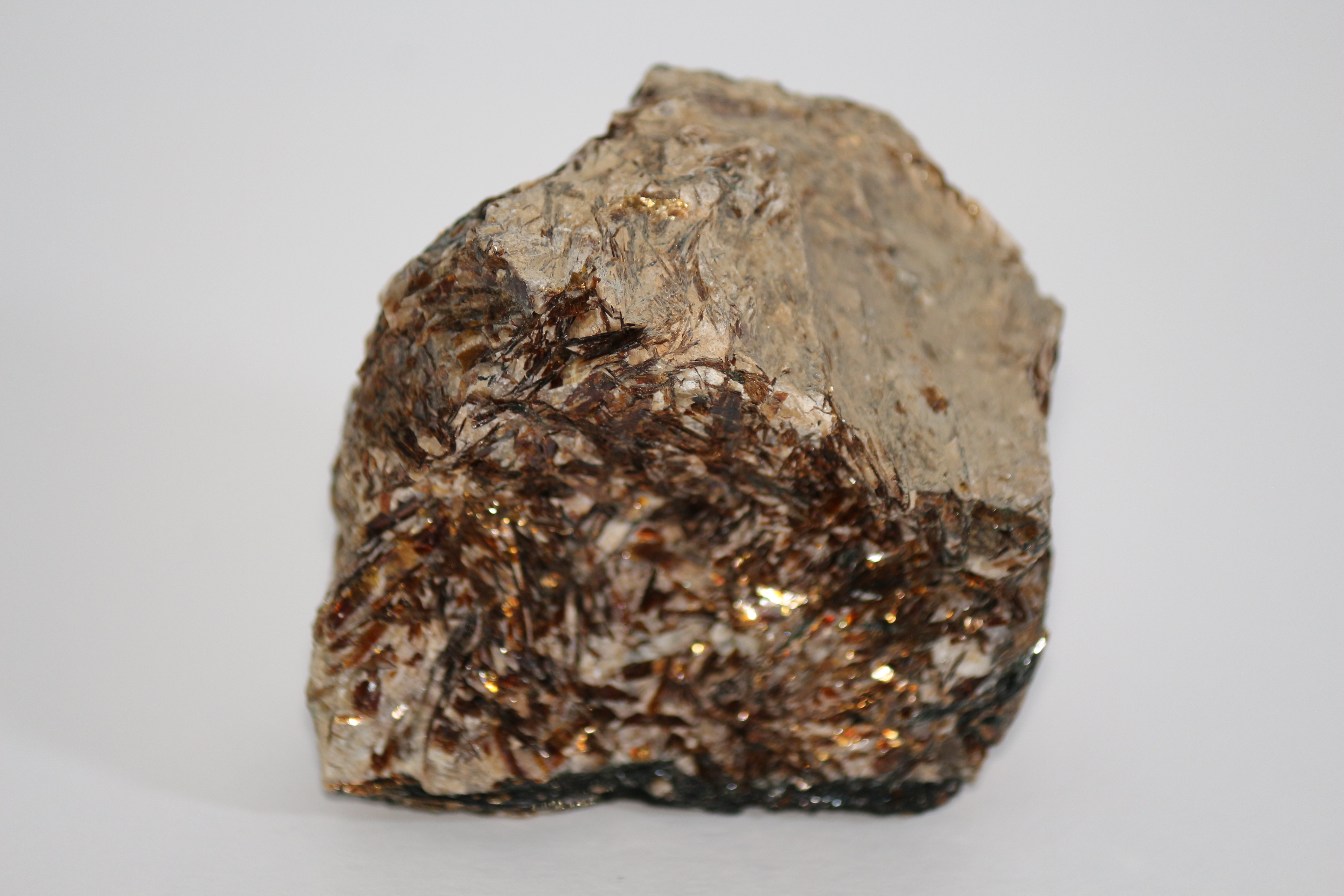 Description : Cluster/aggregate of readiating bladed crystals, golden brown in colour. 6x7x7cm.