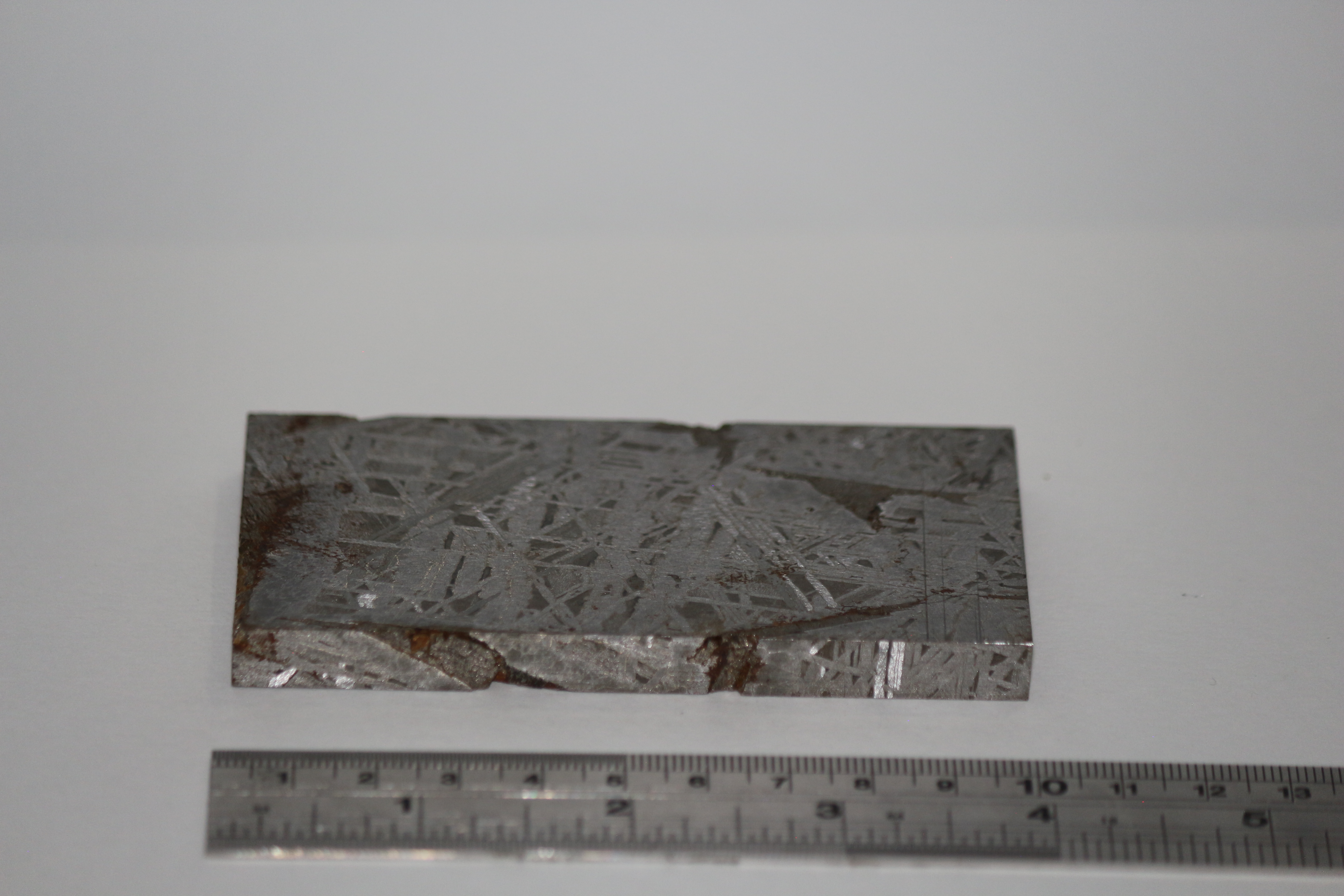 Slice of Aletai Meteorite, China. 340g. Beautiful widmanstatten texture. Bought at Kempton Park in 2024