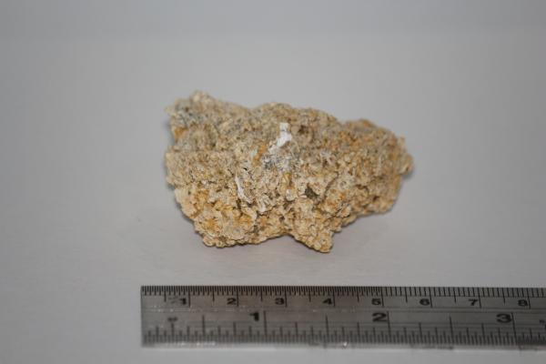 Pale cream/brown coloured pumice from Iceland. 6x3x3cm Gifted by Helen Richards in 2022