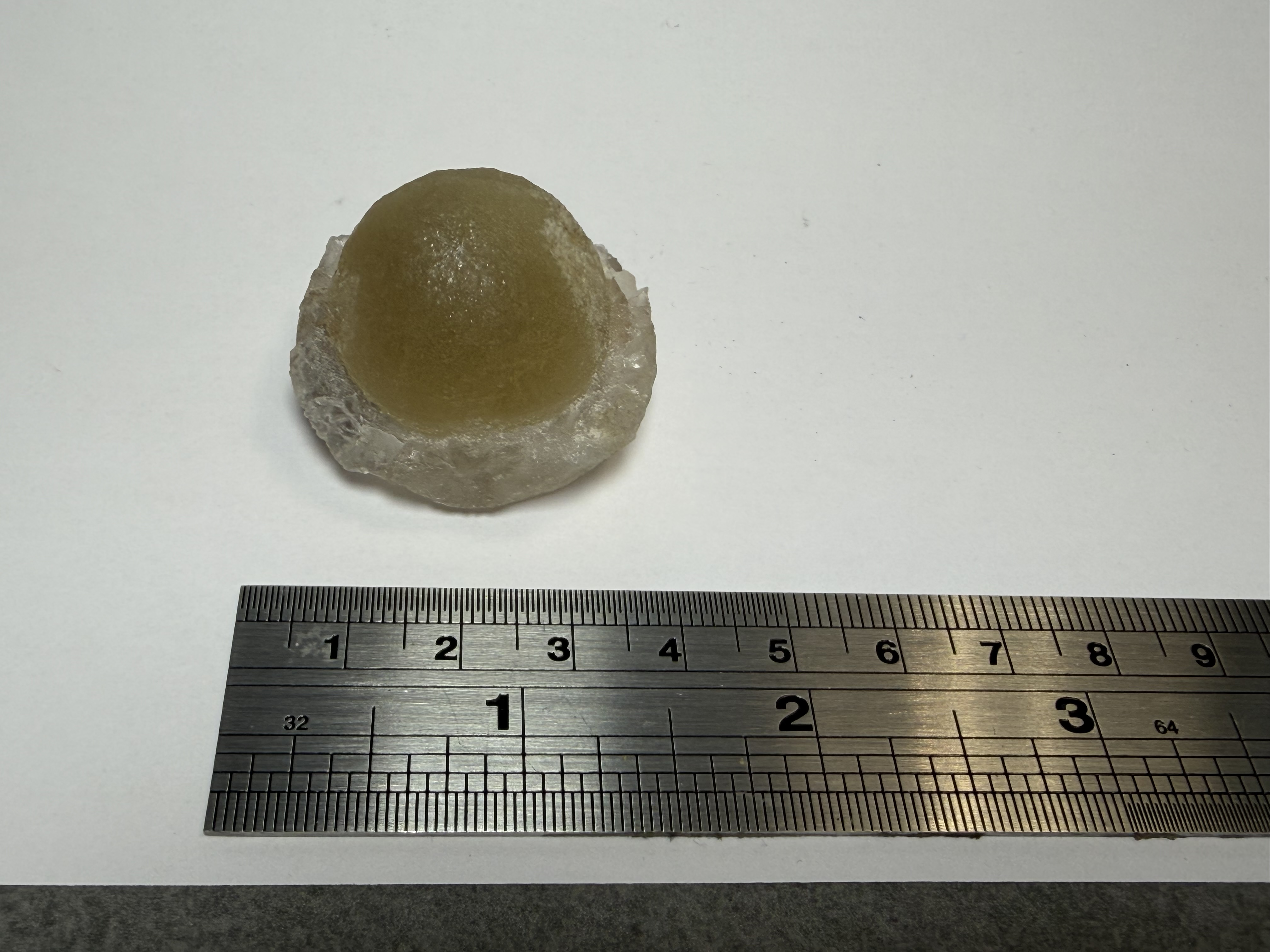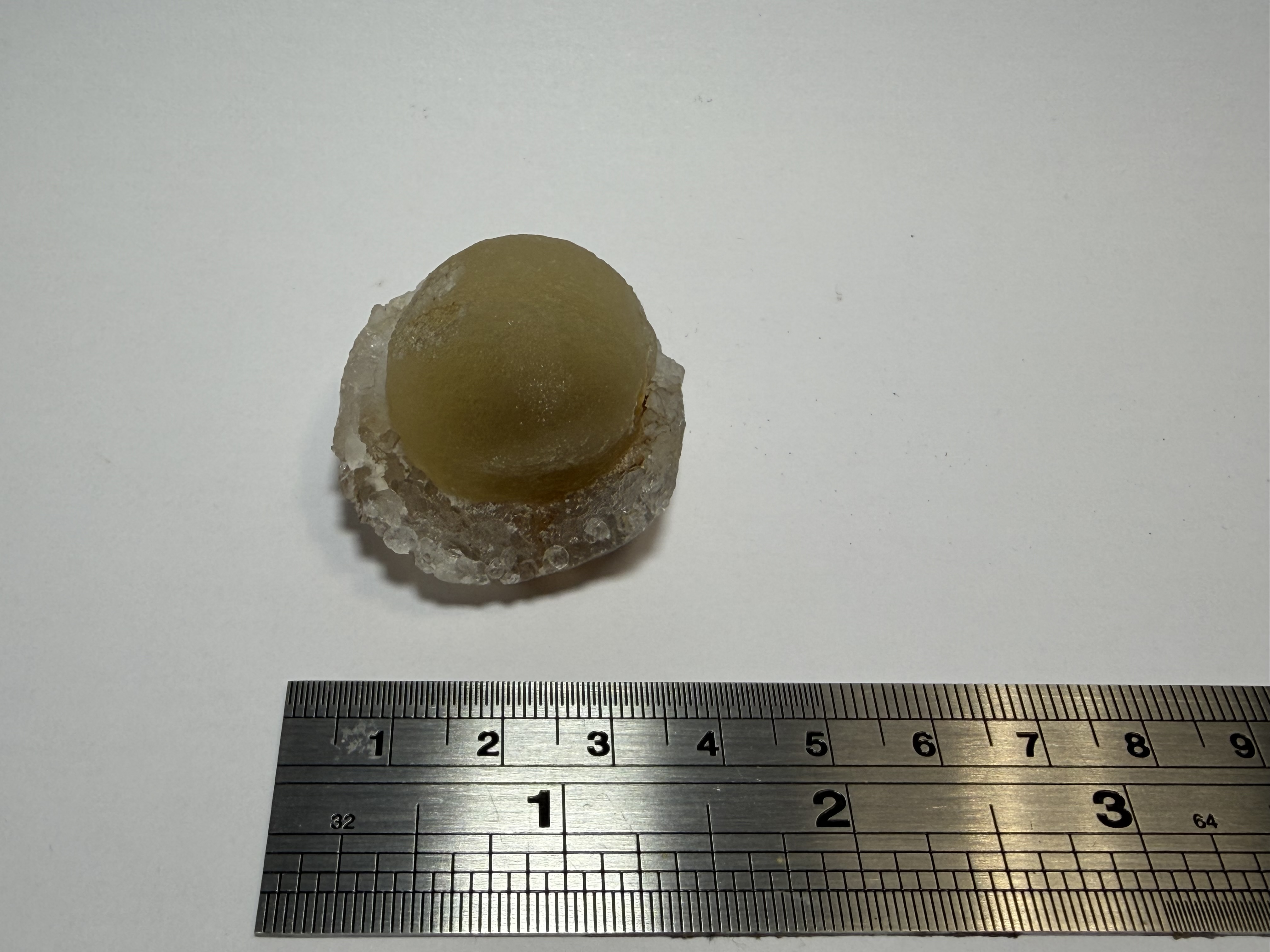 Fluorite Nodule, crystallised from liquid filling vesicle within bassalt specimen includes piece of host rock.